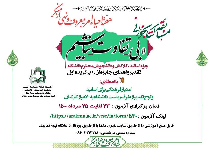 مسابقه کتابخوانی بی تفاوت نباشیم ۲۰ مرداد ۱۴۰۰ | ۰۹:۱۲ کد : ۱۹۲۷۳ اطلاعیه ارسال به دیگران نام شما ایمیل شما ایمیل دریافتکننده ارسال انصراف تعداد بازدید:۲۸۸۵۹ لینک ورود به آزمون
