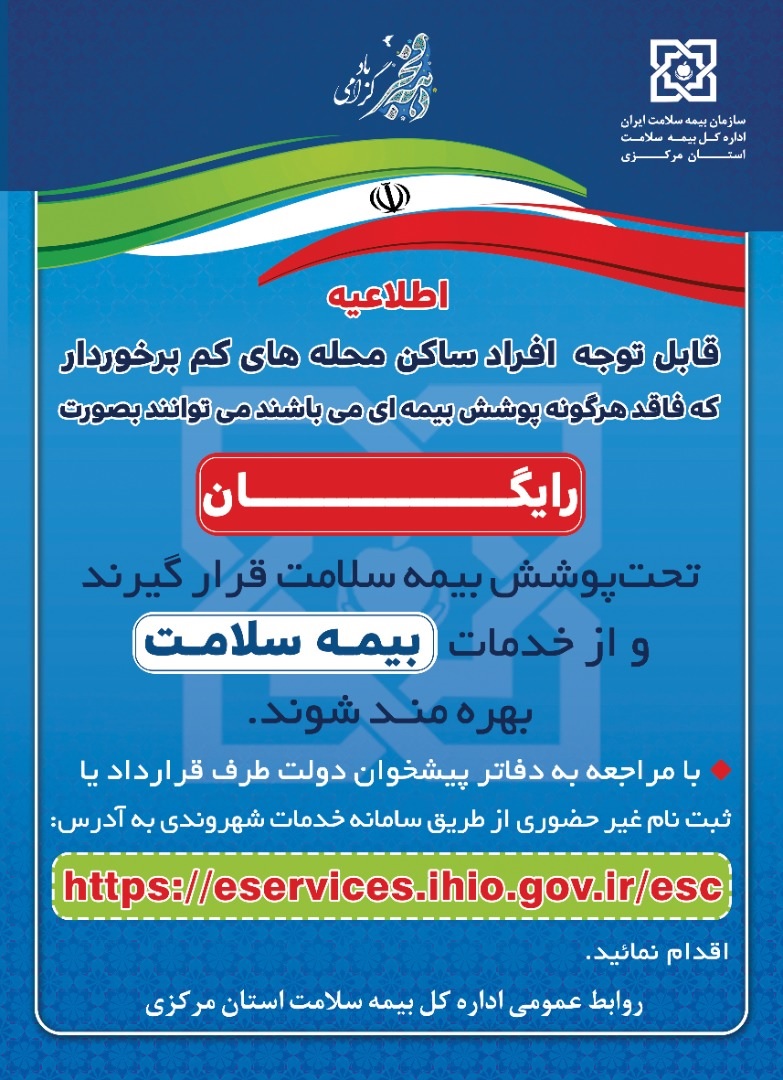 طرح بیمه نمودن افراد فاقد پوشش بیمه ای در محله های کم برخوردار ۰۳ اسفند ۱۴۰۰ | ۱۲:۴۸ کد : ۲۴۱۷۷ اطلاعیه ارسال به دیگران نام شما ایمیل شما ایمیل دریافتکننده ارسال انصراف تعداد بازدید:۲۵۳۸۷