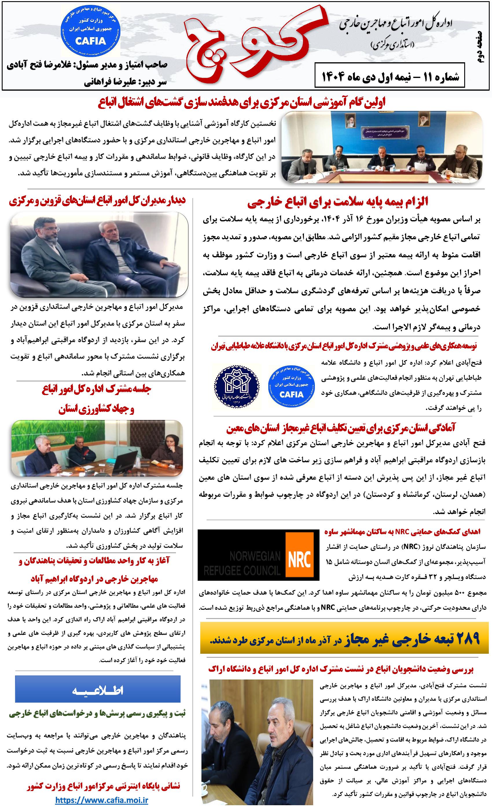 یازدهممین شماره نشریه کوچ، توسط دفتر امور اتباع و مهاجرین خارجی استان مرکزی منتشر گردید.